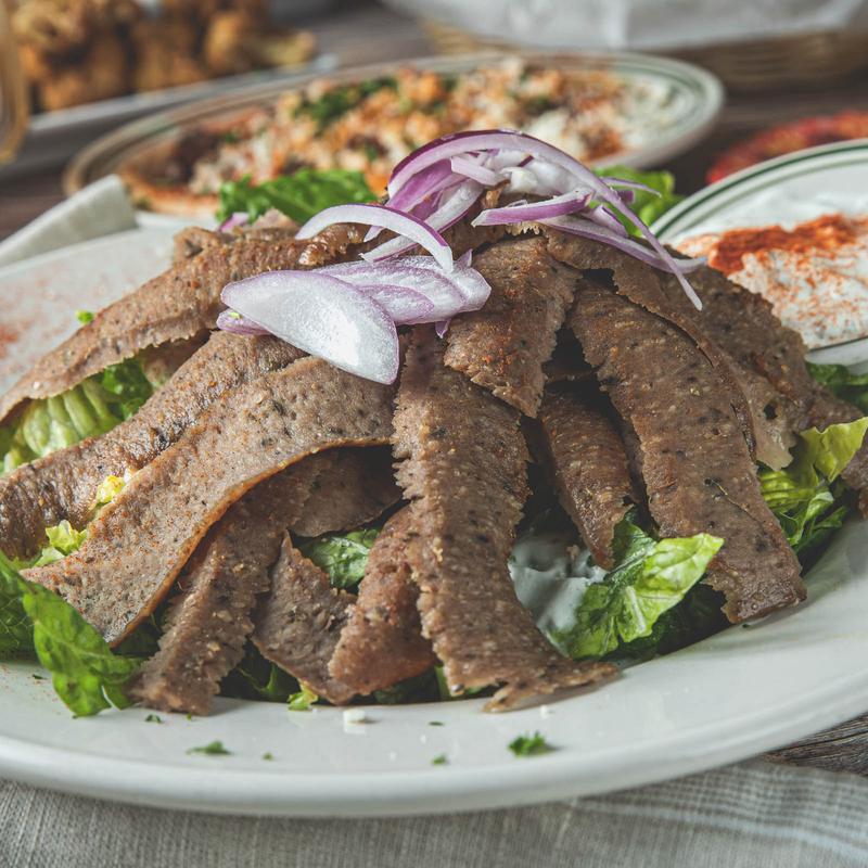 Served with 2 choices of proteins, hummus, tzaziki, rice pilaf, salad and pita bread.